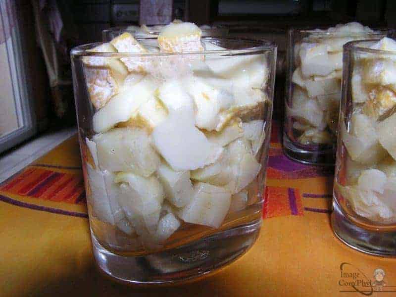 - Déposez les petits cubes dans les verrines allant au four (1 fond artichaut par verrine)